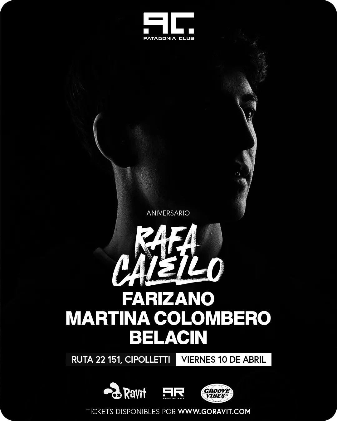 Patagonia Rave celebra 5 años de historia con una edición aniversario de su ciclo Patagonia Club. Desde su nacimiento, el proyecto se consolidó como un punto de encuentro para la cultura electrónica en la Patagonia, impulsando artistas, generando comunidad y construyendo una identidad propia dentro de la escena regional. El 10 de abril nos volvemos a encontrar para celebrar este recorrido: una noche pensada para compartir música, cabina y comunidad.