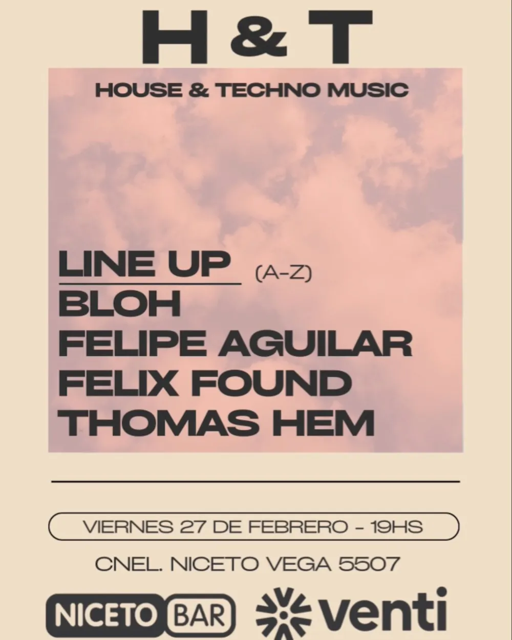 H&T es un evento que se encarga de curar los sonidos del house y el techno, llevando al espectador un viaje sonoro único e irrepetible.